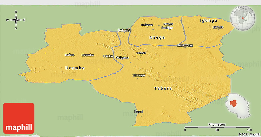 The value of Maphill lies in the possibility to look at the same area from several perspectives. Maphill presents the map of Tabora in a wide variety of map types and styles.