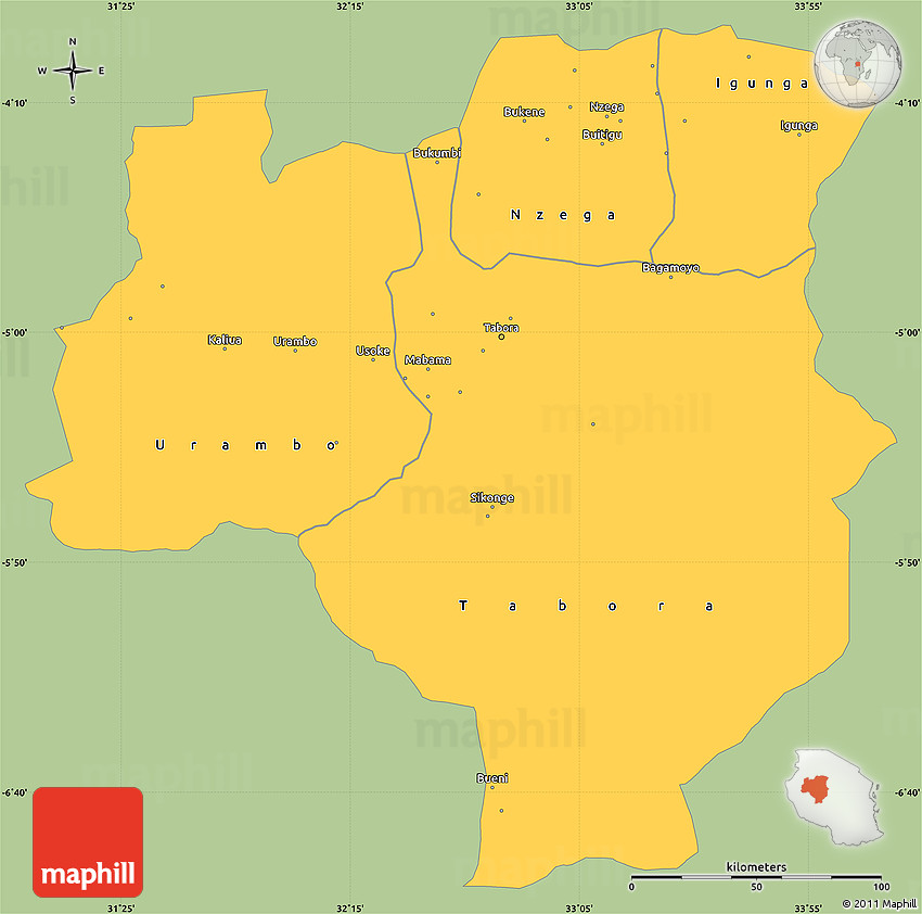 Each map type offers different information and each map style is designed for a different purpose. Read about the styles and map projection used in the above map (Savanna Style Simple Map of Tabora, single color outside).