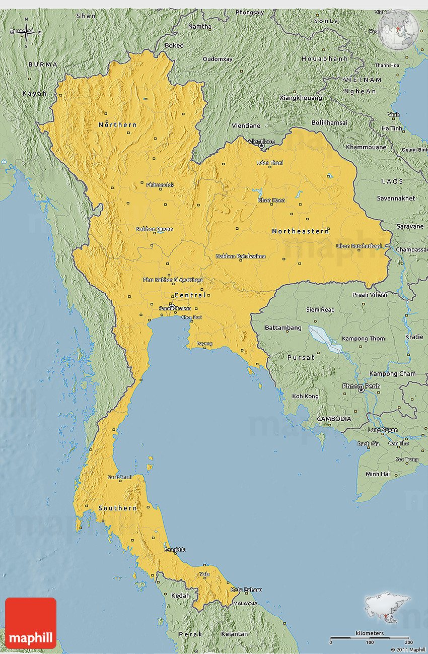 Embed the above savanna style 3D map of Thailand into your website. Enrich your blog with quality map graphics. Make the web a more beautiful place.