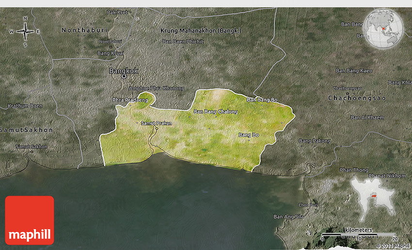 Satellite map shows the Earth's surface as it really looks like. The above map is based on satellite images taken on July 2004. This satellite map of Samut Prakan is meant for illustration purposes only. For more detailed maps based on newer satellite and aerial images switch to a detailed map view.