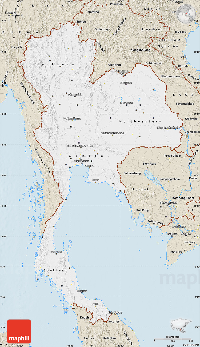 Use the buttons for Facebook, Twitter or Google+ to share a link to this Thailand map. Maphill is the largest map gallery on the web. But the number of maps is certainly not the only reason to visit Maphill.