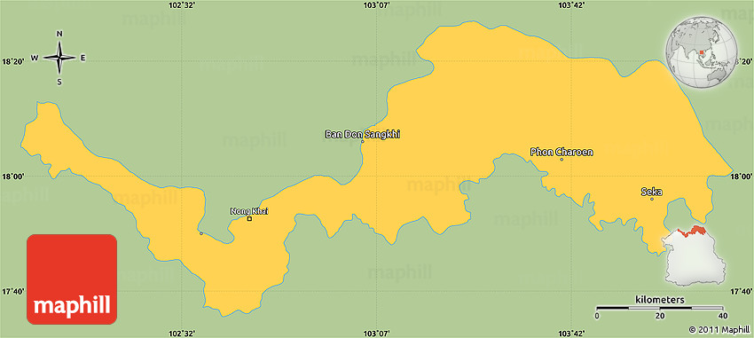 Maphill is a collection of map graphics. This simple outline map of Nong Khai is one of these images. Use the buttons under the image to switch to more comprehensive and detailed map types.