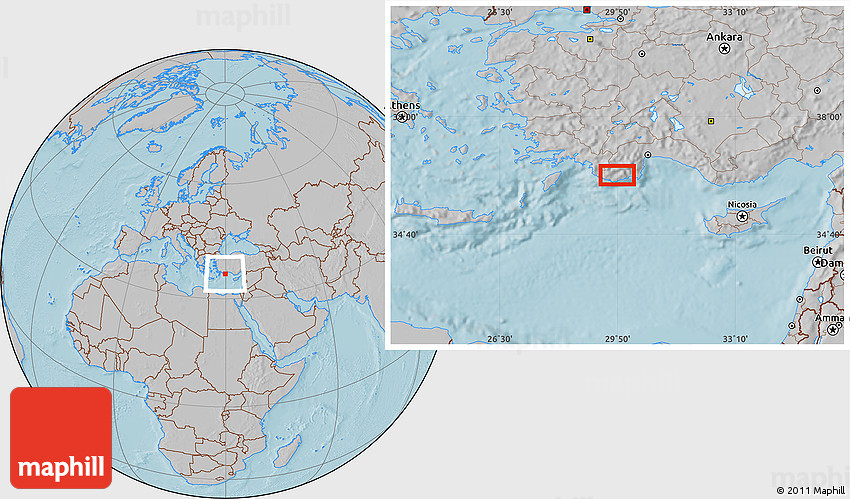 Maphill is a collection of map images. This image combines a gray map with the globe centered on Hacıoğlan. Use the buttons under the image to switch to different map types.