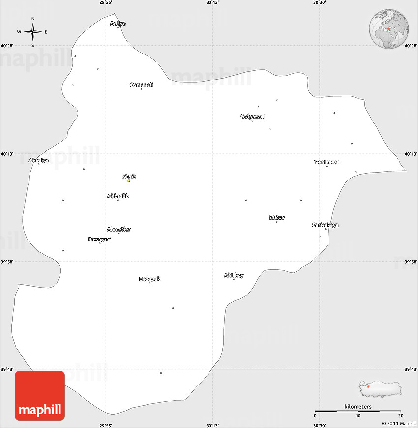 Embed the above silver style simple map of Bilecik into your website. Enrich your blog with quality map graphics. Make the web a more beautiful place.