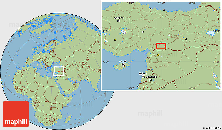 Maphill is a collection of map images. This image combines a savanna style map with the globe centered on Kuzuyatağı. Use the buttons under the image to switch to different map types.