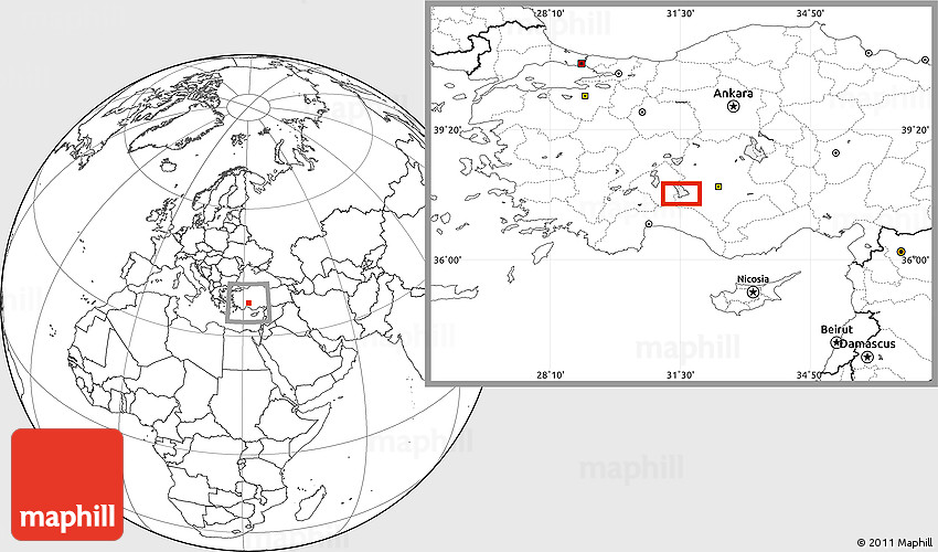 Maphill is a collection of map images. This image combines a blank map with the globe centered on Damlapınar. Use the buttons under the image to switch to different map types.