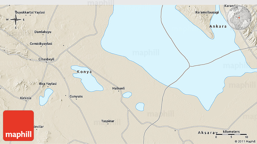The 3D shaded relief map represents one of many map types and styles available. Look at Hacıbey Yaylası, Konya, Turkey from different perspectives.