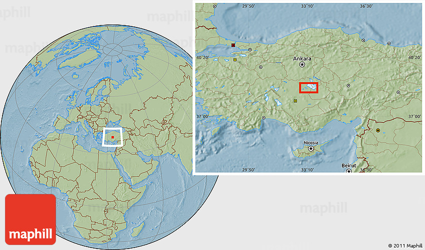 The savanna style location map represents one of many map types and styles available. Look at Kırkışla, Konya, Turkey from different perspectives.