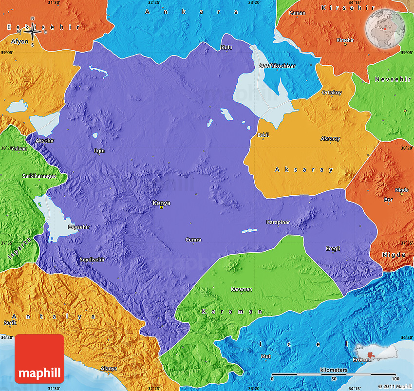 Maphill is a collection of map images. This political map of Konya is one of them. Click on the Detailed button under the image to switch to a more detailed map.