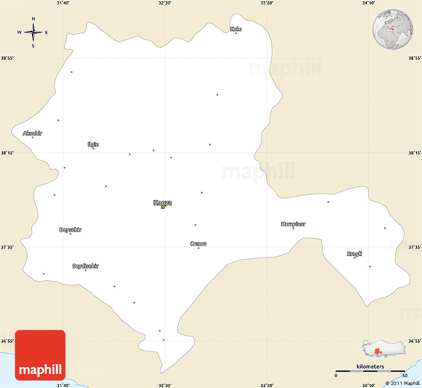 Maphill is a collection of map graphics. This simple outline map of Konya is one of these images. Use the buttons under the image to switch to more comprehensive and detailed map types.