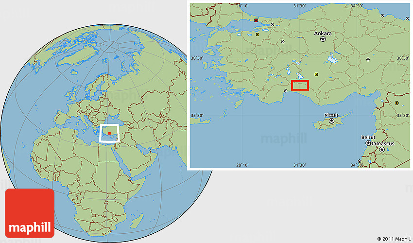Maphill is a collection of map images. This image combines a savanna style map with the globe centered on Uğurlu. Use the buttons under the image to switch to different map types.