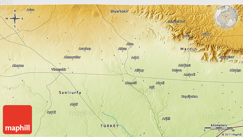Sure, this physical 3D map is nice. But there is good chance you will like other map styles even more. Select another style in the above table. See Tacir and Sanliurfa from a different view.