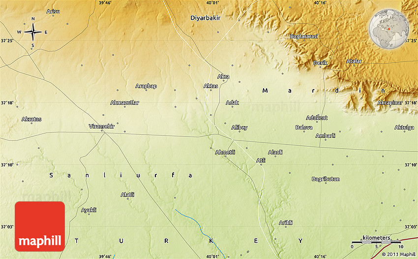 Sure, this physical map is nice. But there is good chance you will like other map styles even more. Select another style in the above table. See Topca and Sanliurfa from a different view.