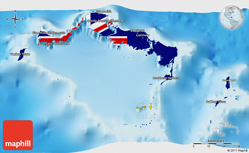 Embed the above flag 3D map of Turks and Caicos Islands into your website. Enrich your blog with quality map graphics. Make the web a more beautiful place.