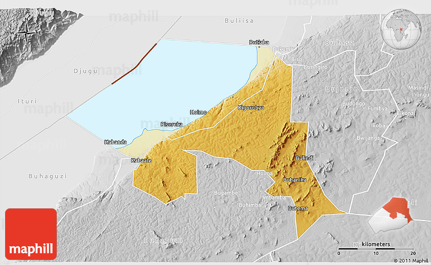 Maphill is a collection of map images. This view of Bugahya at an angle of 60° is one of these images. Click on the Detailed button under the map for a more comprehensive map.