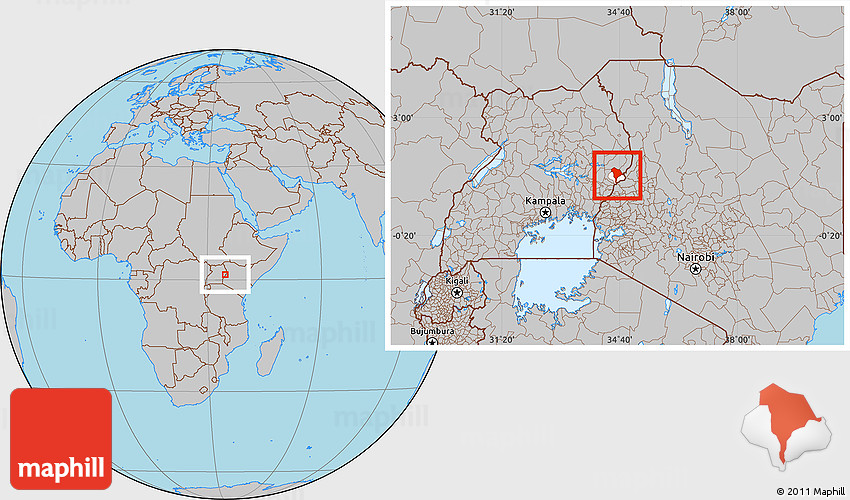 Maphill is a collection of map images. This image combines a gray map with the globe centered on Kween. Use the buttons under the image to switch to different map types.
