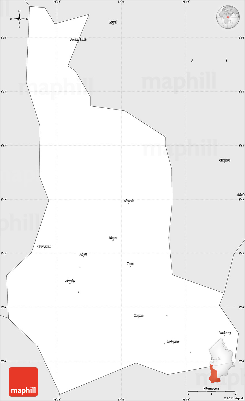 The simple silver style outline map represents one of several map types and styles available. Look at Labwor, Kotido, Uganda from different perspectives.
