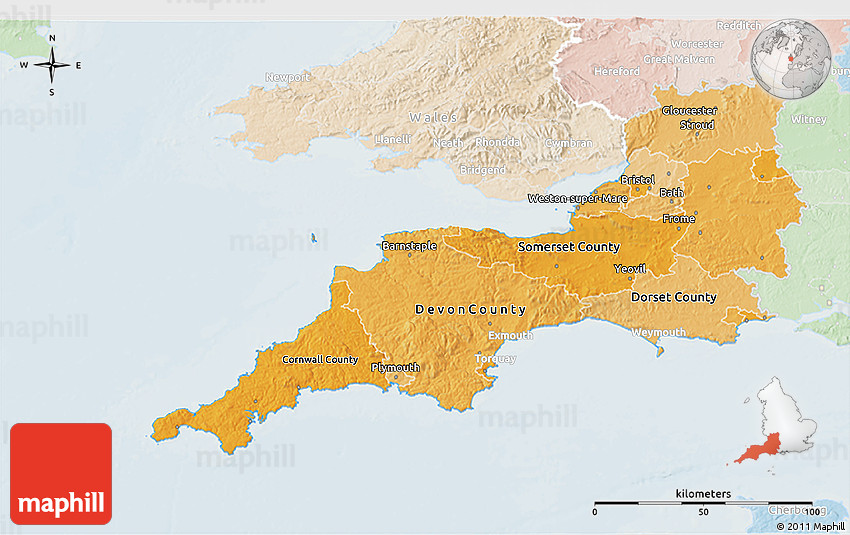 Use the buttons for Facebook, Twitter or Google+ to share this South West, England, United Kingdom map. Maphill is the largest web map gallery. However, the number of maps is certainly not the only reason to visit Maphill.