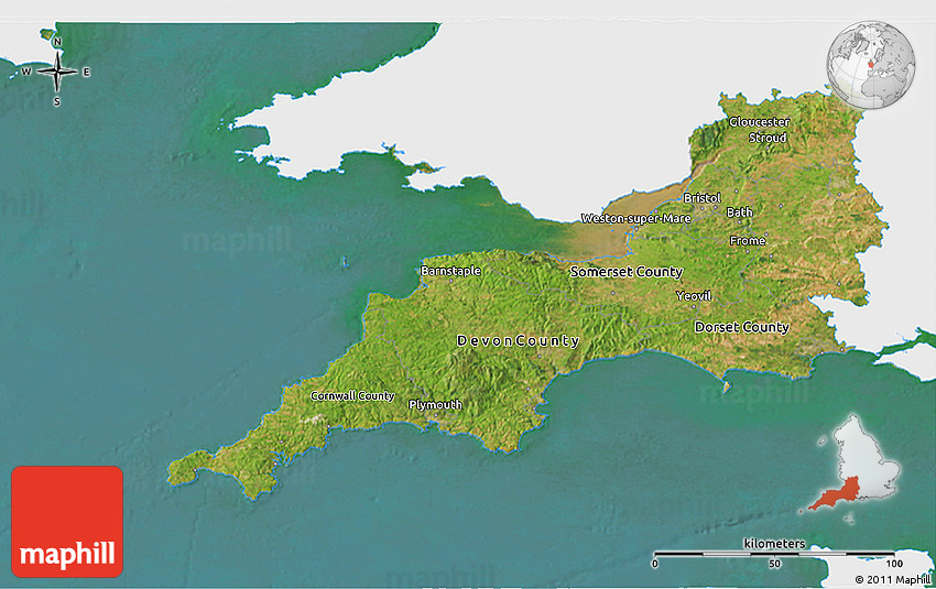 Satellite map shows the Earth's surface as it really looks like. The above map is based on satellite images taken on July 2004. This satellite map of South West is meant for illustration purposes only. For more detailed maps based on newer satellite and aerial images switch to a detailed map view.