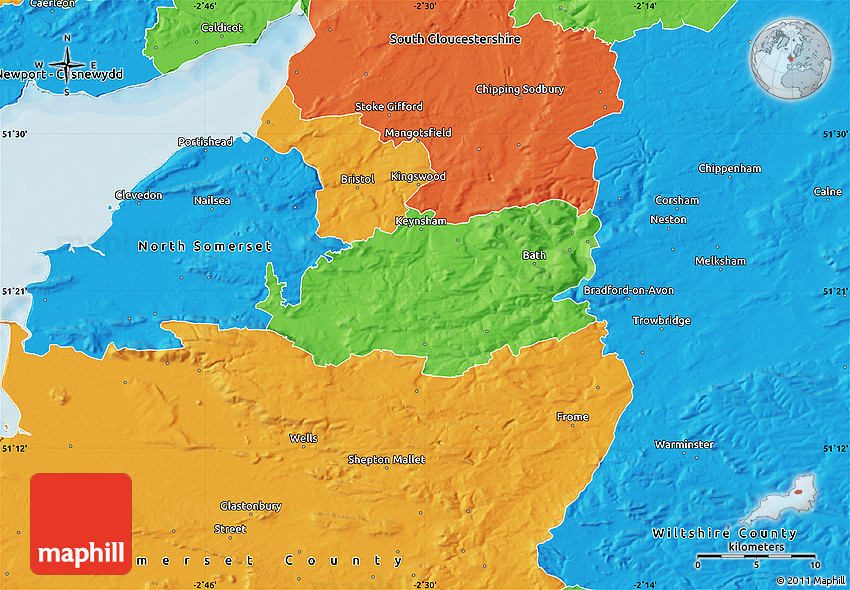 Each map style has its advantages. No map type is the best. The best is that Maphill lets you look at the whole area of Bath and North East Somerset from several different angles.