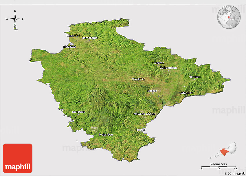Satellite map shows the Earth's surface as it really looks like. The above map is based on satellite images taken on July 2004. This satellite map of Devon County is meant for illustration purposes only. For more detailed maps based on newer satellite and aerial images switch to a detailed map view.