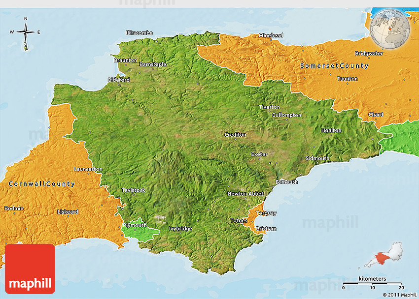 Each map style has its advantages. No map type is the best. The best is that Maphill lets you look at the whole area of Devon County from several different angles.