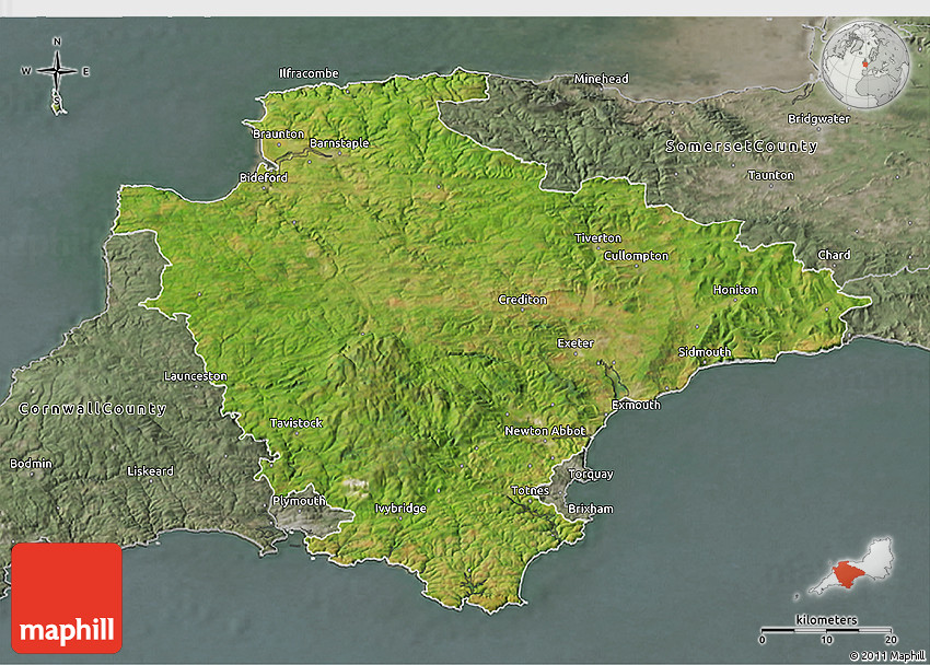 Satellite map shows the Earth's surface as it really looks like. The above map is based on satellite images taken on July 2004. This satellite map of Devon County is meant for illustration purposes only. For more detailed maps based on newer satellite and aerial images switch to a detailed map view.