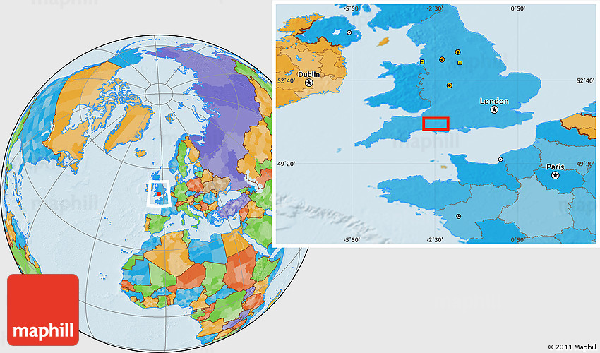 Maphill is a collection of map images. This image combines a political map with the globe centered on Hawkchurch. Use the buttons under the image to switch to different map types.