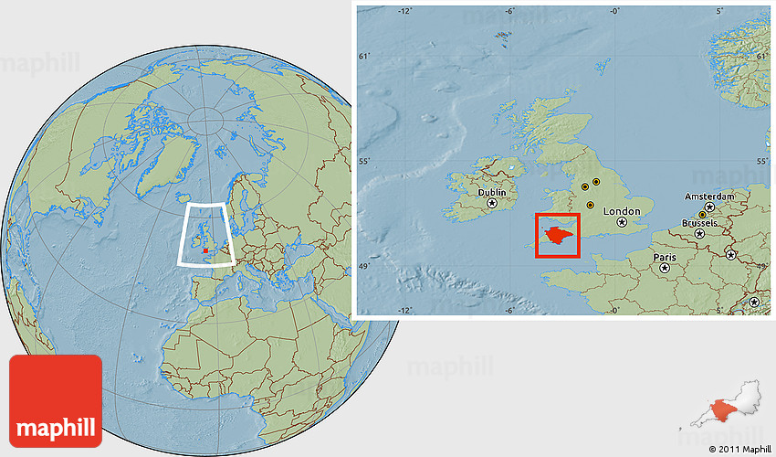 Maphill is a collection of map images. This image combines a savanna style map with the globe centered on Devon County. Use the buttons under the image to switch to different map types.