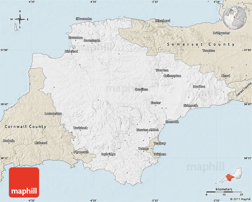 Each map style has its advantages. No map type is the best. The best is that Maphill lets you look at the whole area of Devon County from several different angles.
