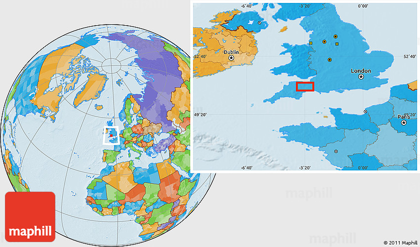 Maphill is a collection of map images. This image combines a political map with the globe centered on Poltimore. Use the buttons under the image to switch to different map types.