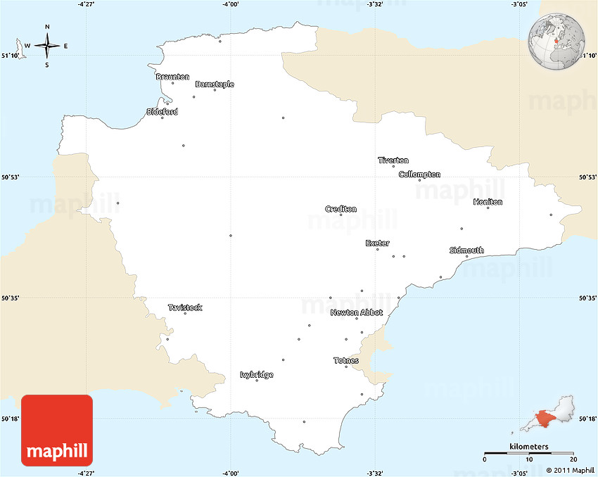 Maphill is a collection of map graphics. This simple outline map of Devon County is one of these images. Use the buttons under the image to switch to more comprehensive and detailed map types.