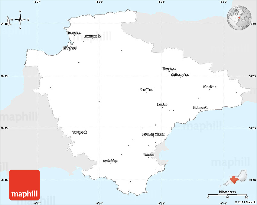 Embed the above silver style simple map of Devon County into your website. Enrich your blog with quality map graphics. Make the web a more beautiful place.