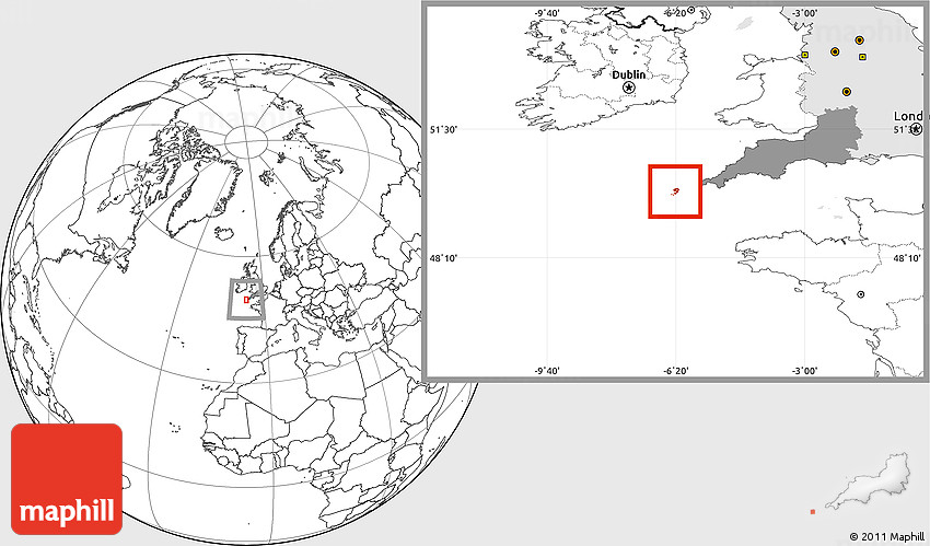 Maphill is a collection of map images. This image combines a blank map with the globe centered on Isles of Scilly. Use the buttons under the image to switch to different map types.