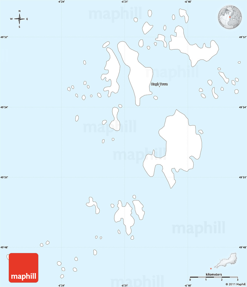 Maphill is a collection of map graphics. This simple outline map of Isles of Scilly is one of these images. Use the buttons under the image to switch to more comprehensive and detailed map types.