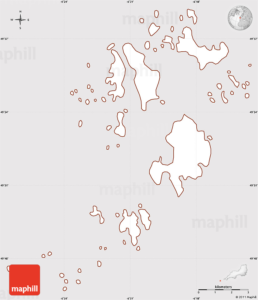 Maphill is a collection of map graphics. This simple outline map of Isles of Scilly is one of these images. Use the buttons under the image to switch to more comprehensive and detailed map types.