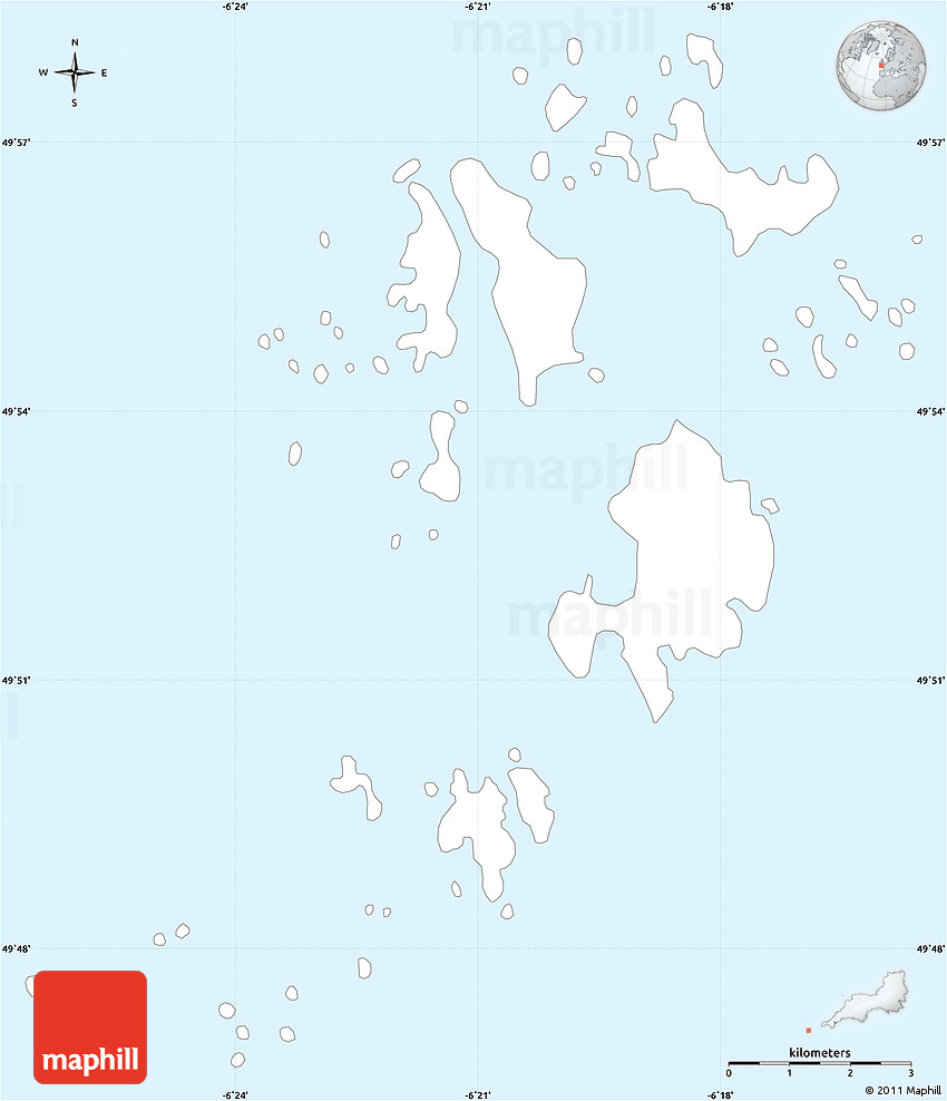 Maphill is a collection of map graphics. This simple outline map of Isles of Scilly is one of these images. Use the buttons under the image to switch to more comprehensive and detailed map types.