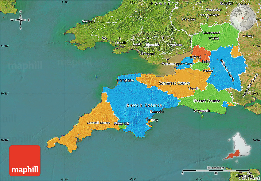 Use the buttons for Facebook, Twitter or Google+ to share this South West, England, United Kingdom map. Maphill is the largest web map gallery. However, the number of maps is certainly not the only reason to visit Maphill.
