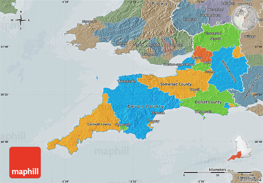 Use the buttons for Facebook, Twitter or Google+ to share this South West, England, United Kingdom map. Maphill is the largest web map gallery. However, the number of maps is certainly not the only reason to visit Maphill.