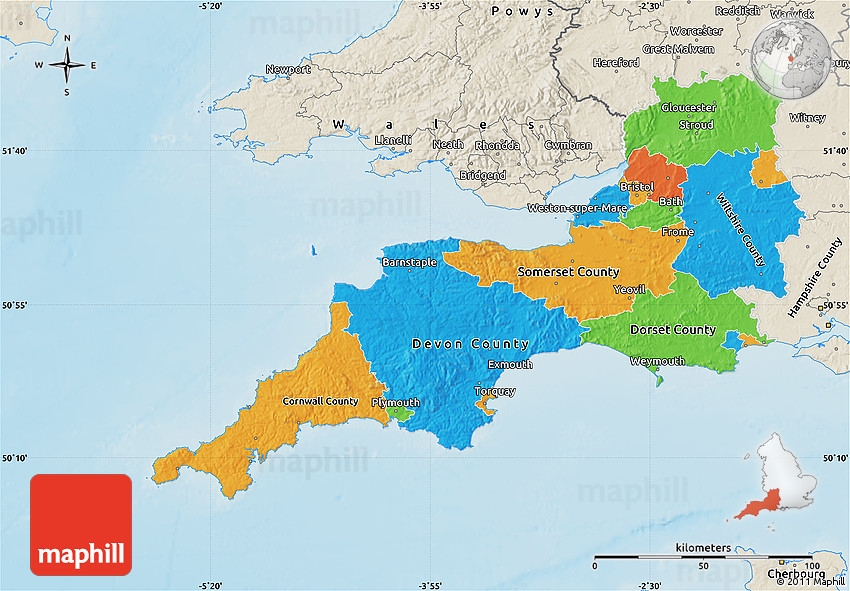 Use the buttons for Facebook, Twitter or Google+ to share this South West, England, United Kingdom map. Maphill is the largest web map gallery. However, the number of maps is certainly not the only reason to visit Maphill.