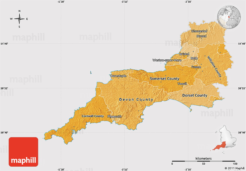 Use the buttons for Facebook, Twitter or Google+ to share this South West, England, United Kingdom map. Maphill is the largest web map gallery. However, the number of maps is certainly not the only reason to visit Maphill.