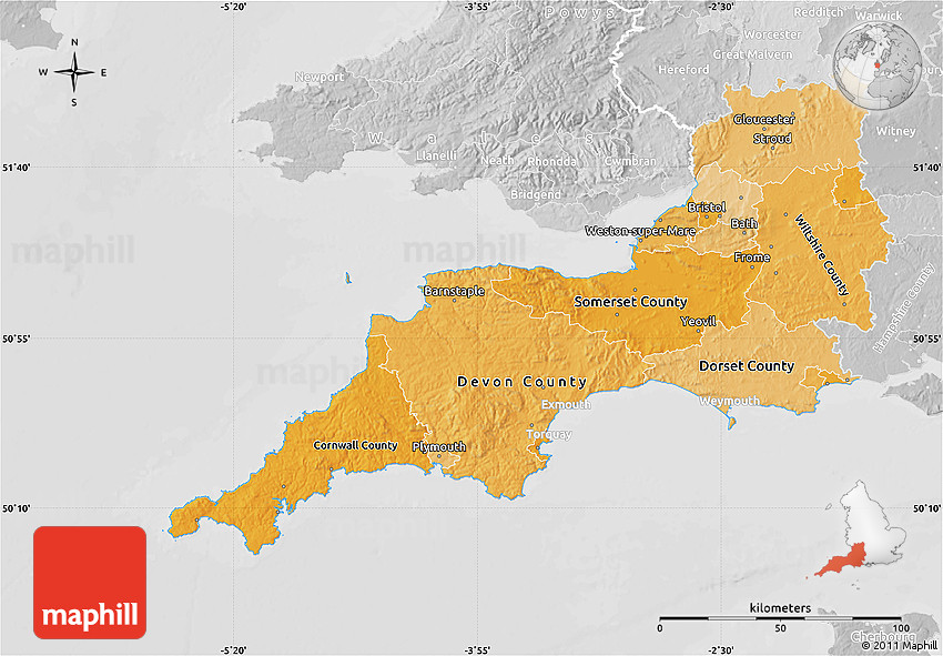 Use the buttons for Facebook, Twitter or Google+ to share this South West, England, United Kingdom map. Maphill is the largest web map gallery. However, the number of maps is certainly not the only reason to visit Maphill.