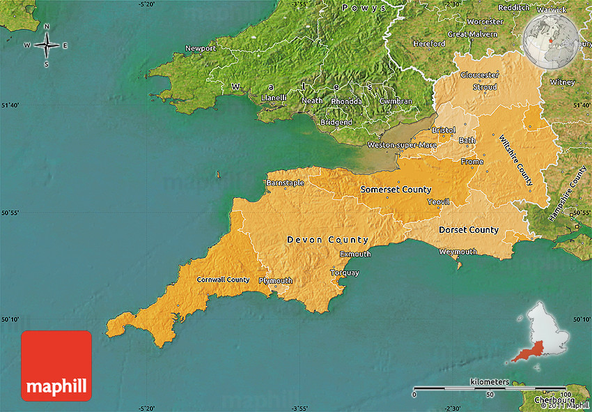 Use the buttons for Facebook, Twitter or Google+ to share this South West, England, United Kingdom map. Maphill is the largest web map gallery. However, the number of maps is certainly not the only reason to visit Maphill.