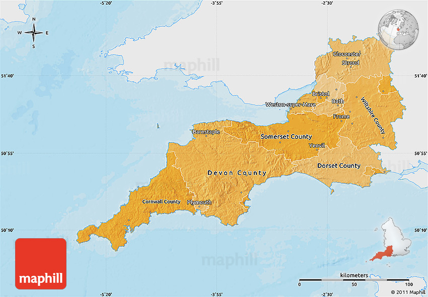 Use the buttons for Facebook, Twitter or Google+ to share this South West, England, United Kingdom map. Maphill is the largest web map gallery. However, the number of maps is certainly not the only reason to visit Maphill.