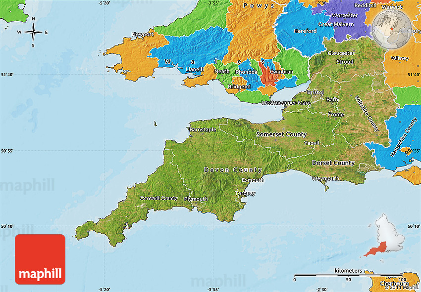 Use the buttons for Facebook, Twitter or Google+ to share this South West, England, United Kingdom map. Maphill is the largest web map gallery. However, the number of maps is certainly not the only reason to visit Maphill.