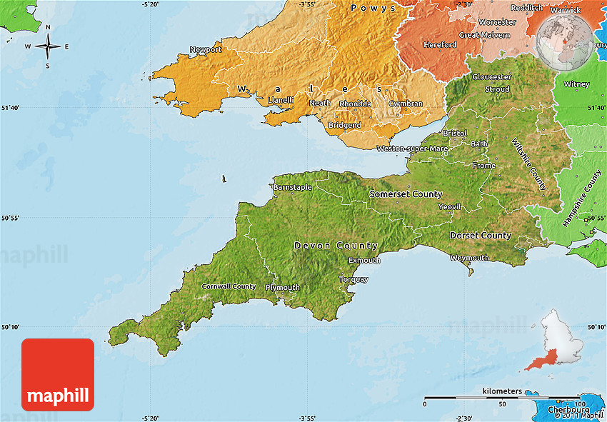 Use the buttons for Facebook, Twitter or Google+ to share this South West, England, United Kingdom map. Maphill is the largest web map gallery. However, the number of maps is certainly not the only reason to visit Maphill.