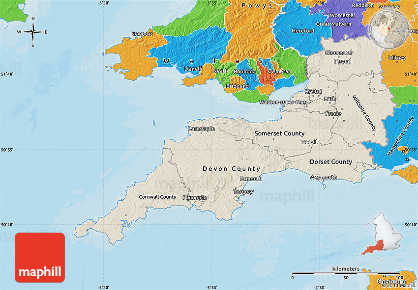Use the buttons for Facebook, Twitter or Google+ to share this South West, England, United Kingdom map. Maphill is the largest web map gallery. However, the number of maps is certainly not the only reason to visit Maphill.