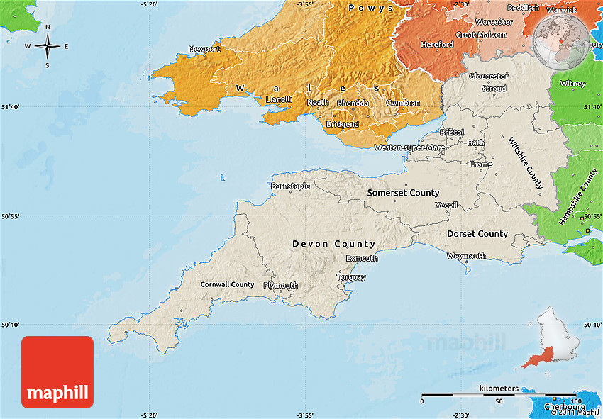 Use the buttons for Facebook, Twitter or Google+ to share this South West, England, United Kingdom map. Maphill is the largest web map gallery. However, the number of maps is certainly not the only reason to visit Maphill.