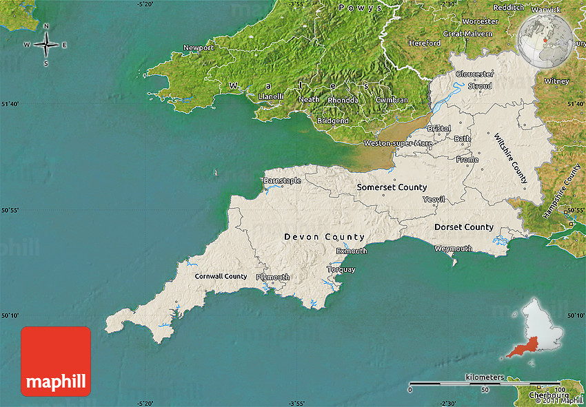 Use the buttons for Facebook, Twitter or Google+ to share this South West, England, United Kingdom map. Maphill is the largest web map gallery. However, the number of maps is certainly not the only reason to visit Maphill.