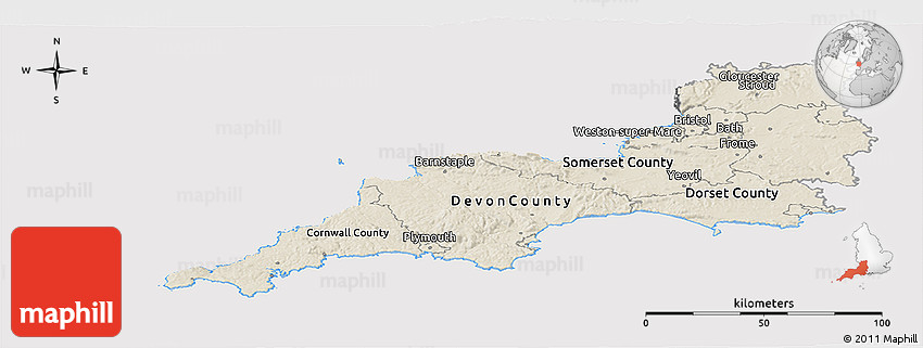 Use the buttons for Facebook, Twitter or Google+ to share this South West, England, United Kingdom map. Maphill is the largest web map gallery. However, the number of maps is certainly not the only reason to visit Maphill.